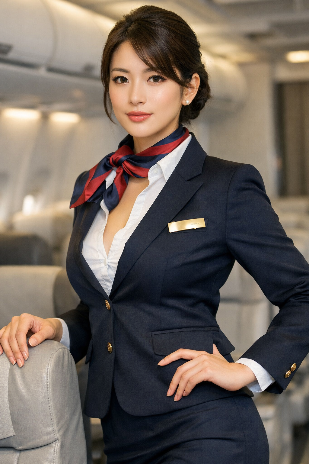 AI美女による「客室乗務員」スタイルの人気が、ひときわ目を引いています。