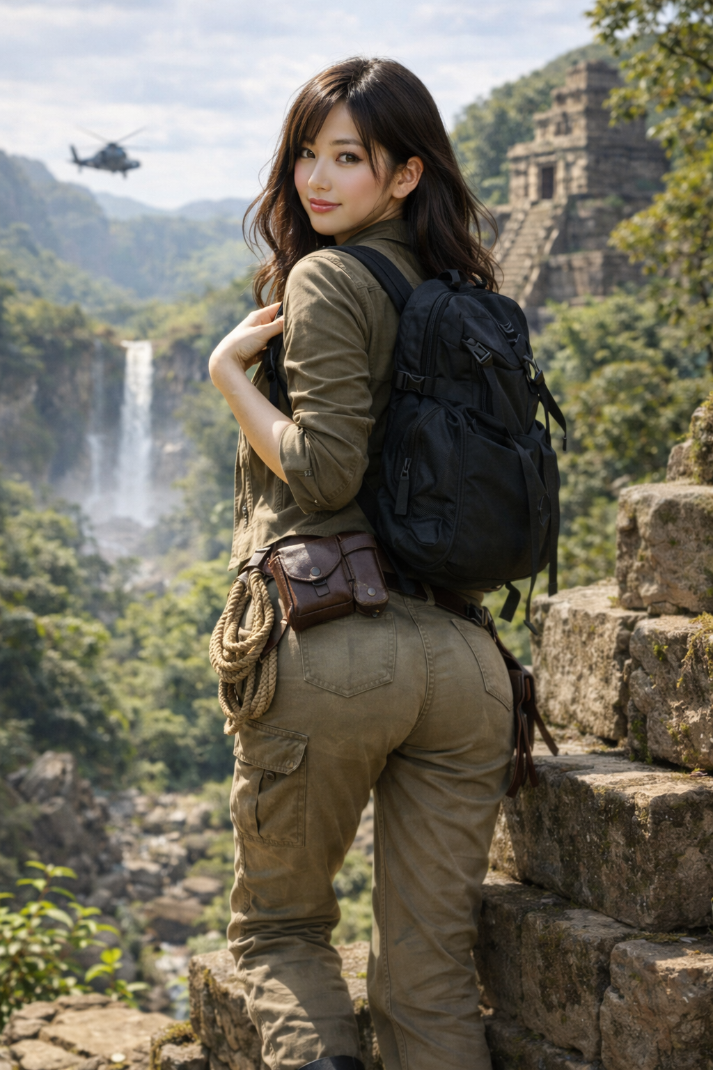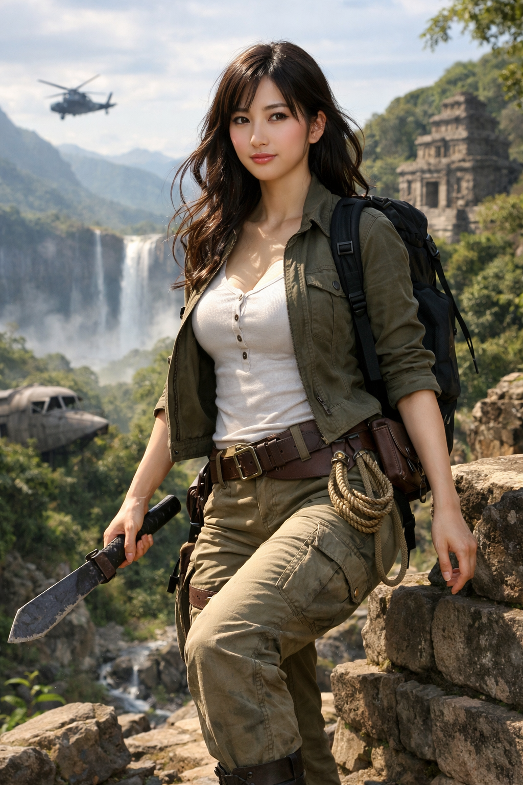 AI美女の写真集「美人冒険家の非日常生活」をテーマに、