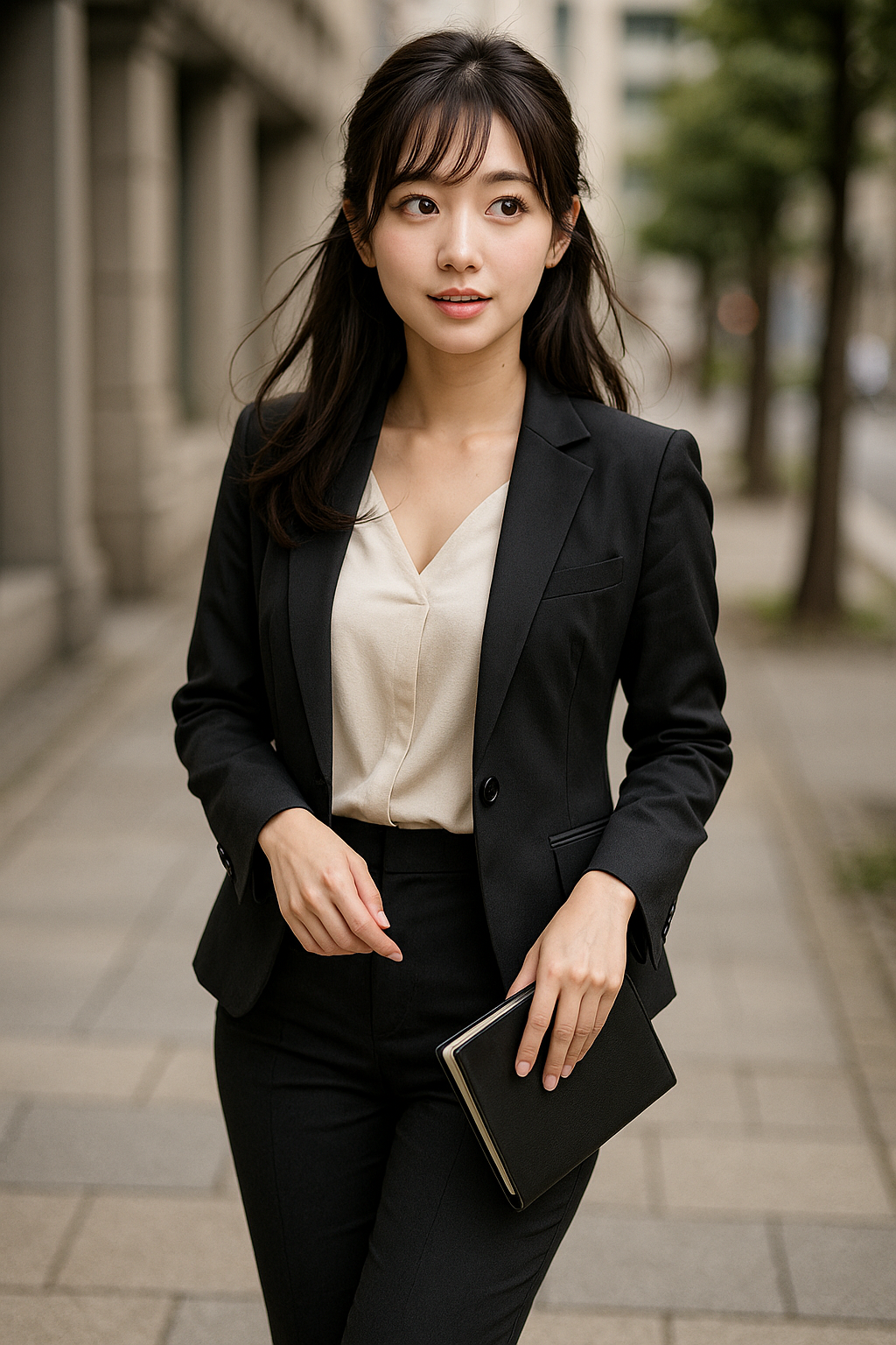 スーツスタイルや小物まで計算された造形美が特徴です。