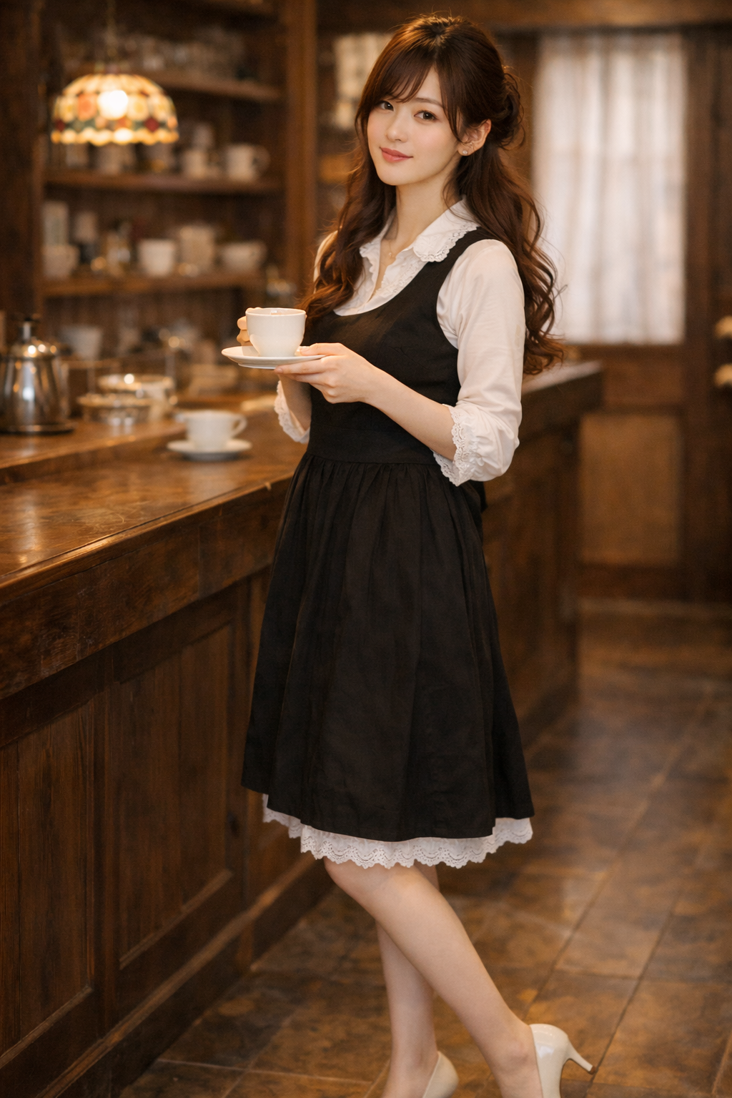 喫茶店という静謐なシチュエーションに立つ女主人。