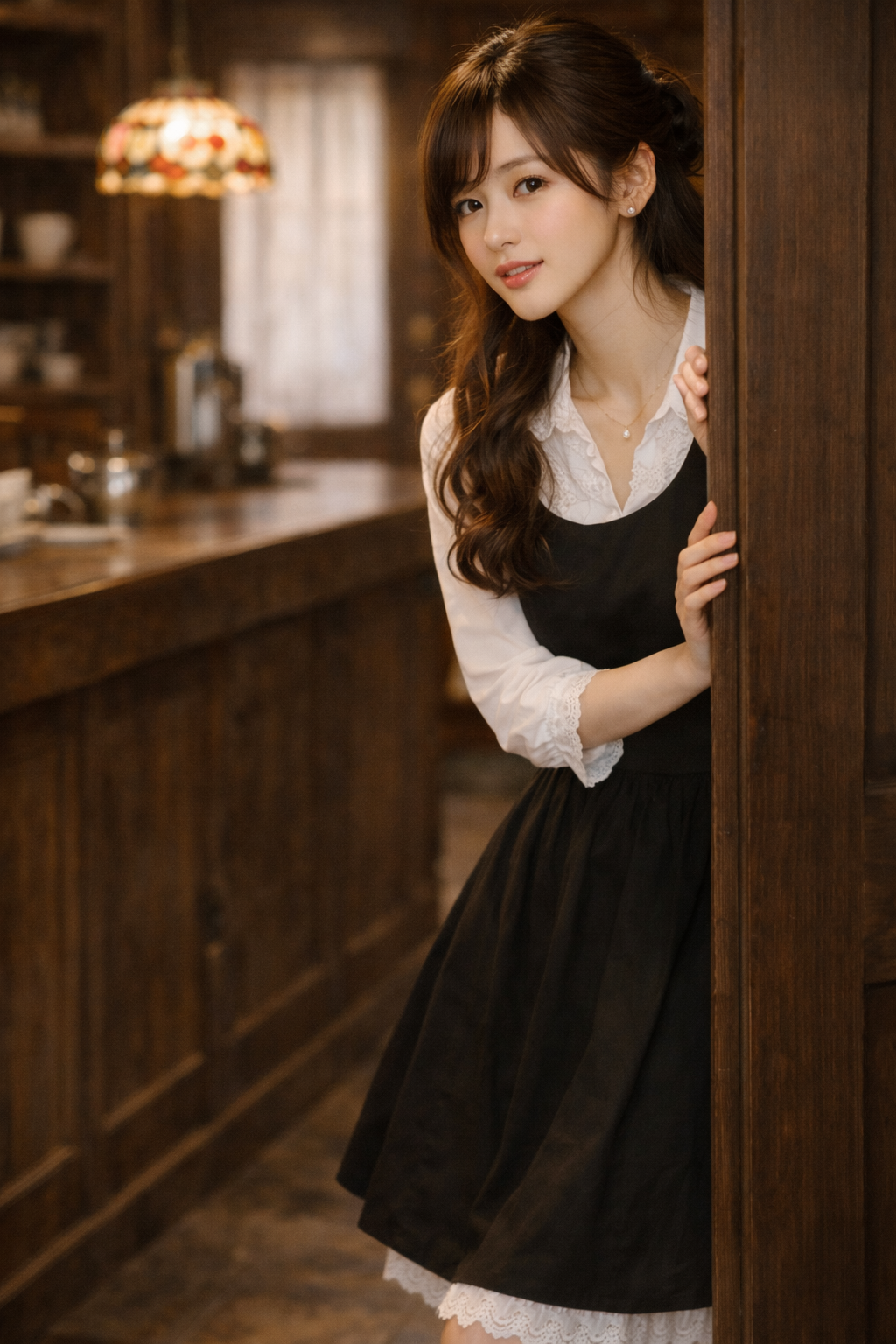 木の温もり、柔らかな照明、制服姿の女主人の佇まい――
