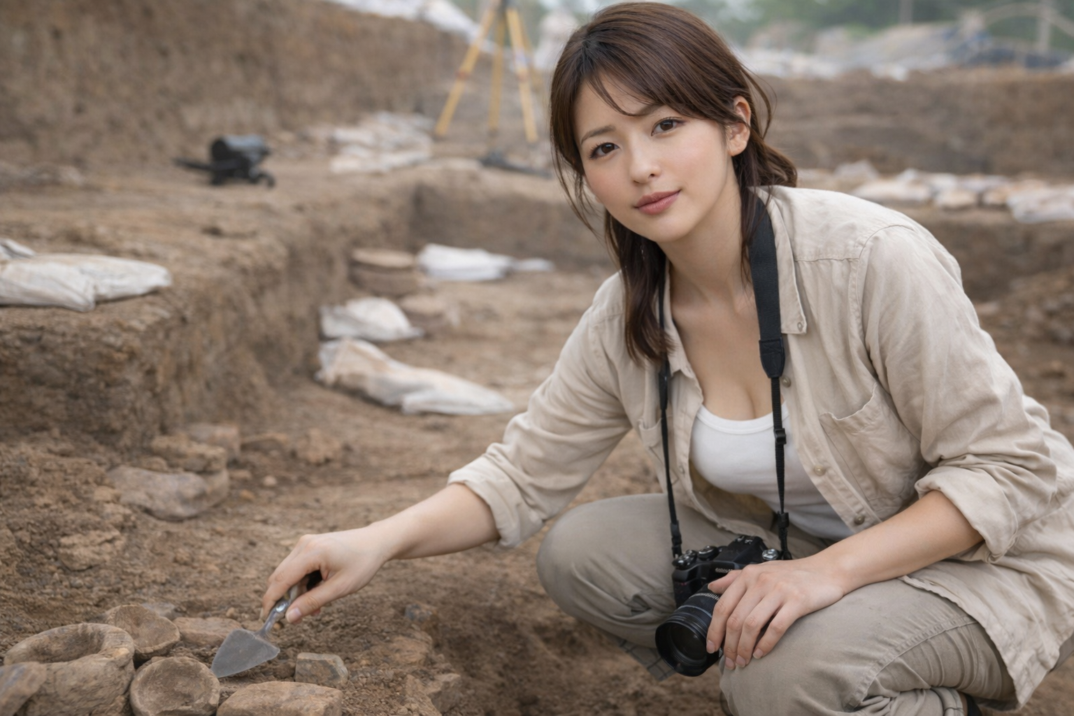 発掘現場を舞台にした考古学者コスプレは、