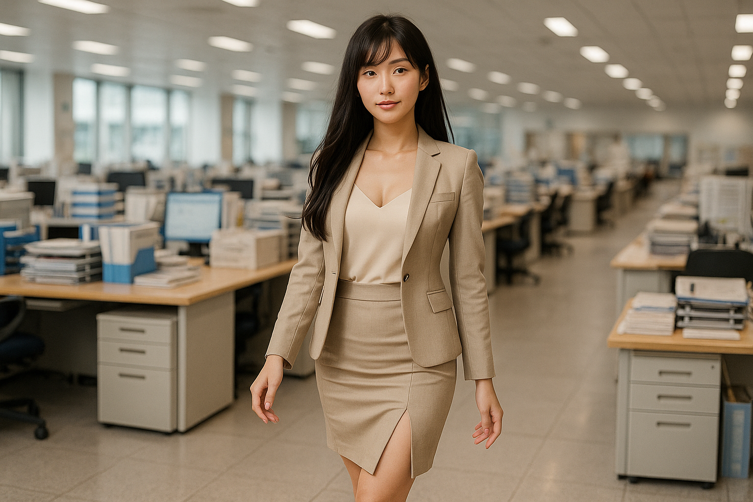 まず、AI美女という存在は、羞恥や倫理観、社会的制約といった現実世界の“しがらみ”から解放された表現を可能にしました。たとえば、「派手な装いの美人公務員」というテーマも、生身の女性では演じにくい構成でありながら、AIであれば自然かつ合法的に再現でき、見る側にとっても抵抗なく楽しめる作品となっています。