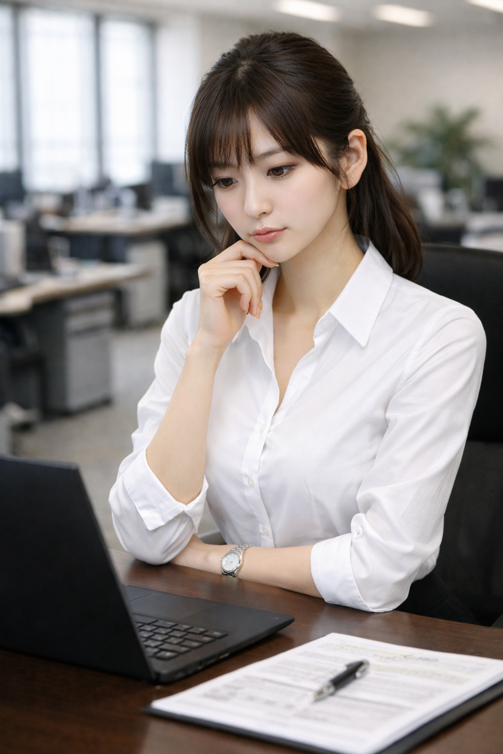 特に「オフィスでの快活な企業生活を送るAI美女」というテーマは、